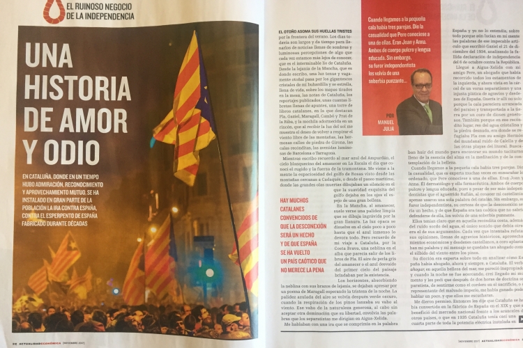 El otoño asoma sus huellas tristes por la frontera del verano. Los días todavía son largos y da tiempo para llenarlos de noticias llenas de sombras y luminosas percepciones de algo que cada vez estamos más lejos de conocer, que es el interminable lío de Cataluña. Desde la lejanía de La Mancha, donde escribo, una luz tenue y otoñal pasa por los gigantescos cristales de mi buhardilla y se estrella, llena de vida, sobre los mapas tirados sobre la mesa, las notas de Cataluña, los reportajes publicados, unas cuantas libretas llenas de apuntes, una torre de libros catalanes, en la que destacan Pla, Gaziel, Maragall, Cambó y Prat de la Riba, y la mochila adormecida en un rincón, que al recibir la luz del sol, me muestra el deseo de volver a respirar el viento libre de las montañas, las hermosas calles de piedra de Girona, las calas recónditas, las avenidas luminosas de Barcelona o Tarragona.